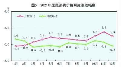 全年居民消費(fèi)價(jià)格比上年上漲0.9%。工業(yè)生產(chǎn)者出廠價(jià)格上漲8.1%。工業(yè)生產(chǎn)者購(gòu)進(jìn)價(jià)格上漲11.0%。農(nóng)產(chǎn)品生產(chǎn)者價(jià)格[12]下降2.2%。12月份,70個(gè)大中城市中,新建商品住宅銷售價(jià)格同比上漲的城市個(gè)數(shù)為53個(gè),下降的為17個(gè);二手住宅銷售價(jià)格同比上漲的城市個(gè)數(shù)為43個(gè),持平的為1個(gè),下降的為26個(gè)。(見(jiàn)圖5)(見(jiàn)表2)