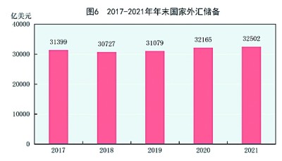 年末國(guó)家外匯儲(chǔ)備32502億美元,比上年末增加336億美元。全年人民幣平均匯率為1美元兌6.4515元人民幣,比上年升值6.9%。(見(jiàn)圖6)