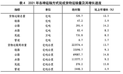 [29]貨物運(yùn)輸總量及周轉(zhuǎn)量包括鐵路、公路、水路、民航和管道五種運(yùn)輸方式完成量,2021年增速按可比口徑計(jì)算。