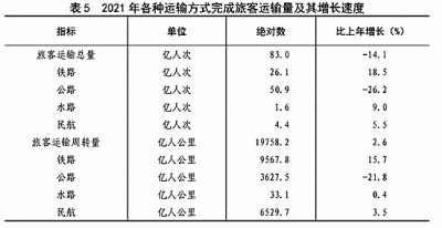 全年旅客運(yùn)輸總量83億人次,比上年下降14.1%。旅客運(yùn)輸周轉(zhuǎn)量19758億人公里,增長(zhǎng)2.6%。(見(jiàn)表5)