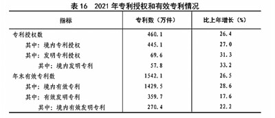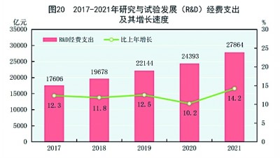 全年研究與試驗(yàn)發(fā)展(R&D)經(jīng)費(fèi)支出27864億元,比上年增長(zhǎng)14.2%,與國(guó)內(nèi)生產(chǎn)總值之比為2.44%,其中基礎(chǔ)研究經(jīng)費(fèi)1696億元。國(guó)家自然科學(xué)基金共資助4.87萬(wàn)個(gè)項(xiàng)目。截至年末,正在運(yùn)行的國(guó)家重點(diǎn)實(shí)驗(yàn)室533個(gè),納入新序列管理的國(guó)家工程研究中心191個(gè),國(guó)家企業(yè)技術(shù)中心1636家,大眾創(chuàng)業(yè)萬(wàn)眾創(chuàng)新示范基地212家。國(guó)家科技成果轉(zhuǎn)化引導(dǎo)基金累計(jì)設(shè)立36支子基金,資金總規(guī)模624億元。國(guó)家級(jí)科技企業(yè)孵化器[60]1287家,國(guó)家備案眾創(chuàng)空間[61]2551家。全年授予專利權(quán)460.1萬(wàn)件,比上年增長(zhǎng)26.4%;PCT專利申請(qǐng)受理量[62]7.3萬(wàn)件。截至年末,有效專利1542.1萬(wàn)件,其中境內(nèi)有效發(fā)明專利270.4萬(wàn)件。每萬(wàn)人口高價(jià)值發(fā)明專利擁有量[63]7.5件。全年商標(biāo)注冊(cè)773.9萬(wàn)件,比上年增長(zhǎng)34.3%。全年共簽訂技術(shù)合同67萬(wàn)項(xiàng),技術(shù)合同成交金額37294億元,比上年增長(zhǎng)32.0%。(見(jiàn)圖20)(見(jiàn)表16)
