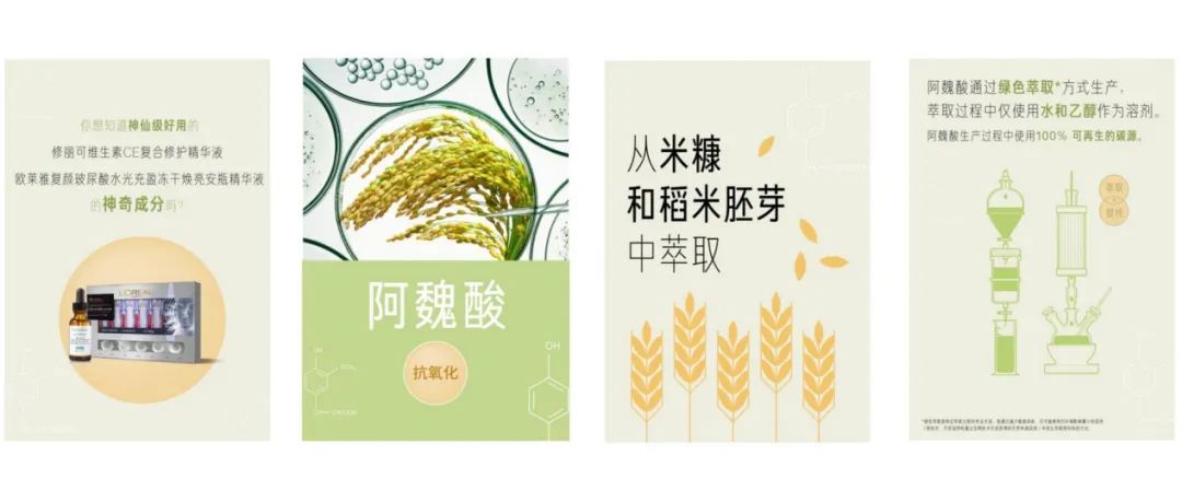 除了這些直接手段,企業也在用各種方式降低碳排放。目前,歐萊雅已有兩家中國工廠實現0碳排放,預計至2025年,歐萊雅所有工廠將100%實現碳中和。歐萊雅的許多原材料都來自大自然。廣受關注的歐萊雅注白瓶,以阿魏酸為核心美白成分。在強抗氧成分——阿魏酸的提取過程中,采用了綠色萃取方式。這種方式減少了能源消耗,使用了對環境影響最小的溶劑。