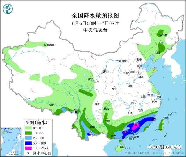 預(yù)計(jì)6日起,南方地區(qū)主雨帶將階段性南壓,強(qiáng)降雨主要位于江南南部和華南等地;6日,廣西東部、廣東、江西南部、福建中南部、云南南部等地部分地區(qū)有大到暴雨,局地大暴雨(100~220毫米)。