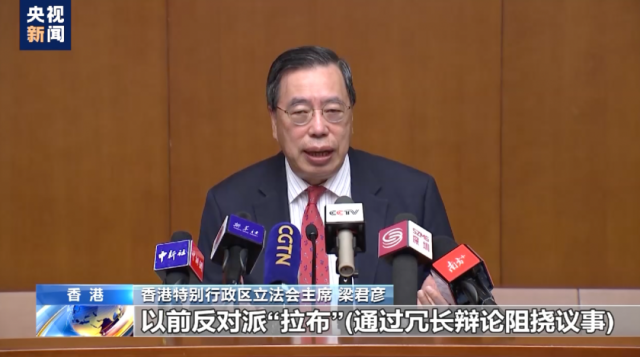 梁君彥說:“以前反對派‘拉布’(通過冗長辯論阻撓議事),把你拉到什么都做不了。反對派就是用所有不同的方法拖‘一國兩制’的后腿。”