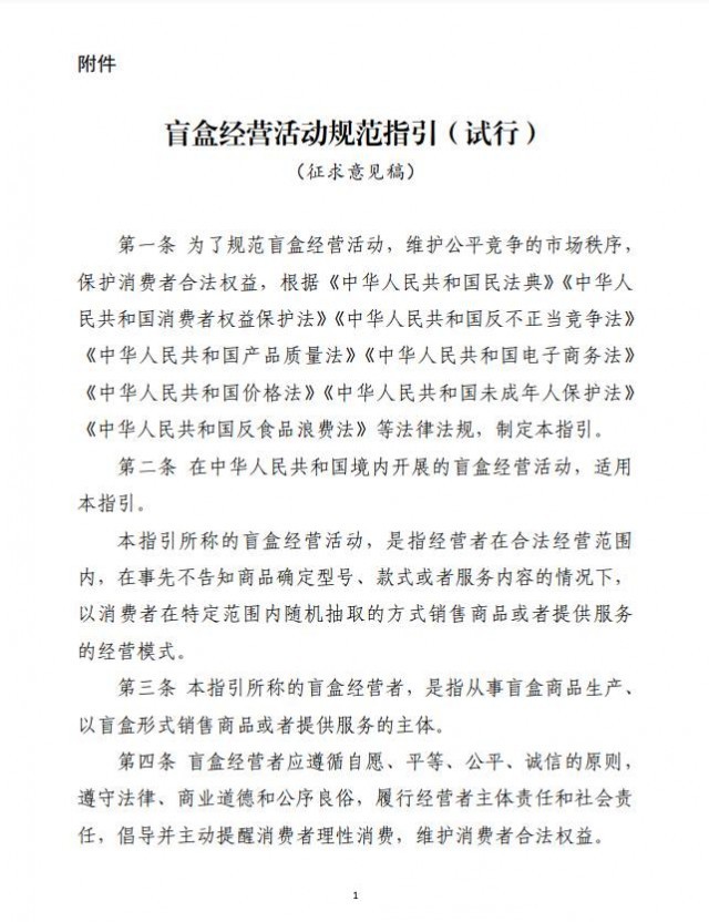 附件:盲盒經營活動規范指引(試行)(征求意見稿)