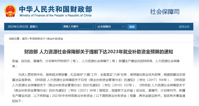 財政部、人社部10日發布《關于提前下達2023年就業補助資金預算的通知》,提前下達資金達432.3億元。