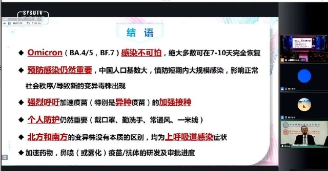 鐘南山表示,奧密克戎(BA.4/5,BF.7)感染不可怕,絕大多數可在7—10天完全恢復。他還指出,目前眾多數據顯示,感染過一次奧密克戎后,一年內再次感染的比例非常小。他說,感染一次奧密克戎后,體內會產生抗體,等于打了一次疫苗。