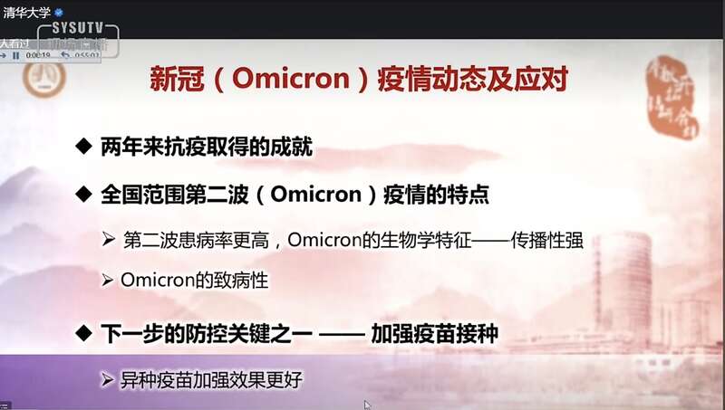 本次講座是“全國高校抗疫大講堂”的一次活動,由中山大學、北京大學、清華大學共同主辦。鐘南山系統分析了全國范圍第二波奧密克戎疫情的特點,介紹了奧密克戎的生物學特征、致病性,以及在大學教學環境中如何讓學生加強個人防護,青年人如何應對新冠,加強個人防護的8條建議等。