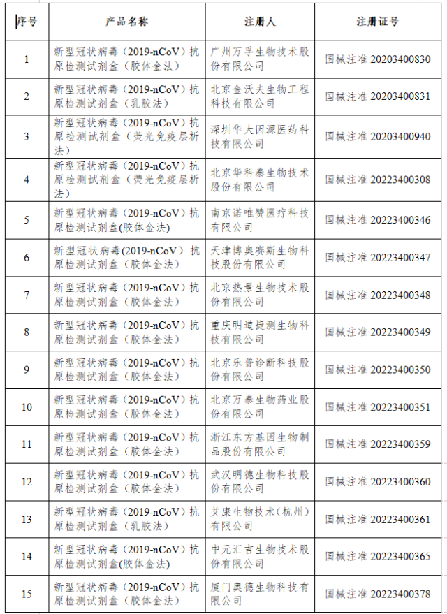 12月22日,經(jīng)國家藥監(jiān)局審查,批準(zhǔn)艾維可生物科技有限公司和邁克生物股份有限公司的2個(gè)新冠病毒抗原檢測(cè)試劑產(chǎn)品。截至目前,國家藥監(jiān)局已批準(zhǔn)44個(gè)新冠病毒抗原檢測(cè)試劑產(chǎn)品。