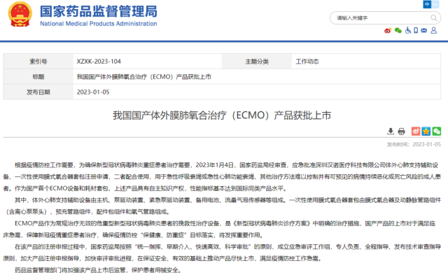 國產(chǎn)首個ECMO產(chǎn)品,獲批上市!