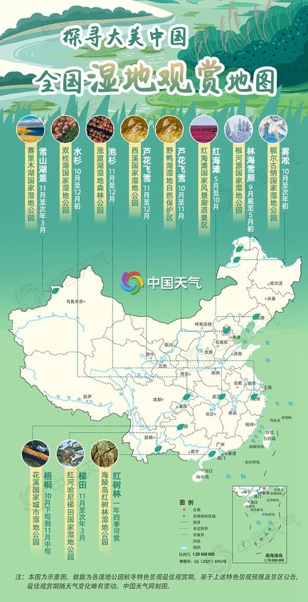 濕地不僅能為人們提供四季不同的可觀賞景觀,還是十分重要的自然生態系統,為大量的動植物提供棲息地,既能保護生物的多樣性,也能調節氣候、凈化水質。有興趣的朋友可根據最佳觀賞期前往觀賞,提醒大家出游仍需注意佩戴口罩,做好健康防護工作。(中國天氣網 文/江漪 設計/任成英 數據支持/李靚)