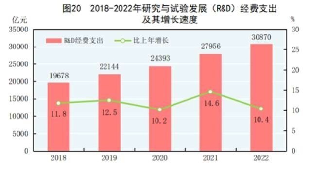 中國網財經2月28日訊 國家統計局28日發布的2022年國民經濟和社會發展統計公報顯示,2022年,全年研究與試驗發展(R&D)經費支出30870億元,比上年增長10.4%,與國內生產總值之比為2.55%,其中基礎研究經費1951億元。國家自然科學基金共資助5.19萬個項目。截至年末,正在運行的國家重點實驗室533個,納入新序列管理的國家工程研究中心191個,國家企業技術中心1601家,大眾創業萬眾創新示范基地212家。國家科技成果轉化引導基金累計設立36支子基金,資金總規模624億元。國家級科技企業孵化器1425家,國家備案眾創空間2441家。