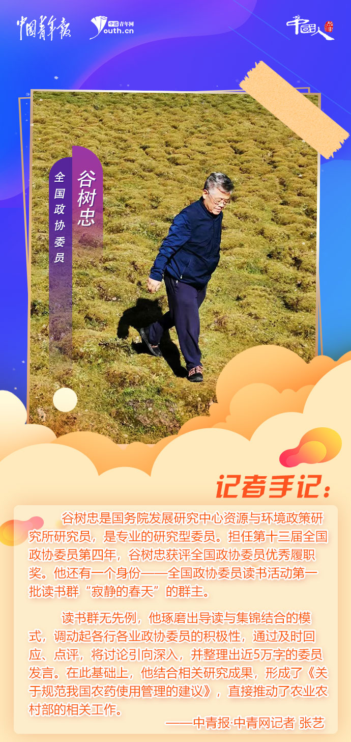 他常來奧森公園鍛煉,一圈5公里,先慢后快,他有自己的節奏。他是國務院發展研究中心資源與環境政策研究所研究員,是專業的研究型委員。擔任第十三屆全國政協委員第四年,谷樹忠獲評全國政協委員優秀履職獎。他還有一個身份——全國政協委員讀書活動第一批讀書群“寂靜的春天”的群主。