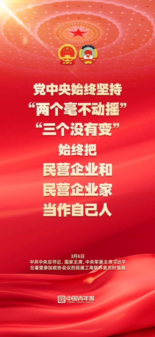 “始終把民營企業和民營企業家當作自己人”;“無論是國有企業還是民營企業,都是促進共同富裕的重要力量,都必須擔負促進共同富裕的社會責任。”3月6日下午,習近平總書記在看望參加政協會議的民建工商聯界委員時強調,要正確引導民營經濟健康發展高質量發展。關于民營企業和民營企業家,總書記作出哪些重要論述,轉存金句,共同學習