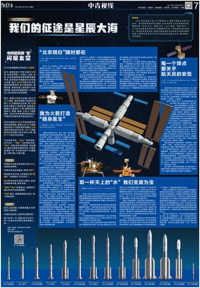 今天,我們迎來了第八個中國航天日。隨著中國航天不斷“走出去”,昔日的神秘面紗早已揭開,近年來更是以自信開放的姿態頻頻出圈:“神舟”飛天,“嫦娥”奔月,“北斗”指路,“祝融”探火,一個個國之重器成為當代青少年最愛追的“星”。本版邀約奮戰在航天一線的優秀青年代表,請他們講述逐夢太空征途上創造的精彩故事,以期吸引更多青少年加入探索宇宙奧秘的大軍,格物致知、叩問蒼穹。
