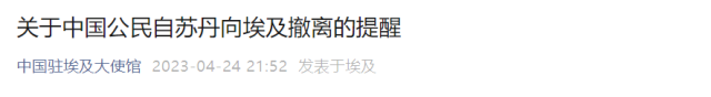 4月24日晚間,我國駐埃及使館發(fā)布關于中國公民自蘇丹向埃及撤離的提醒:
