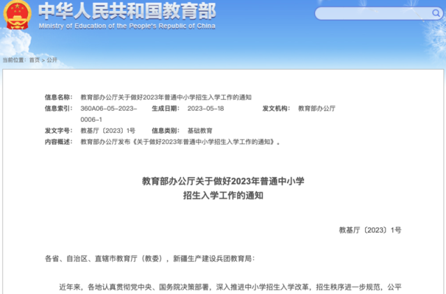教育部:各地要做好2023年普通中小學(xué)招生入學(xué)工作 不得通過考試或變相考試選拔學(xué)生