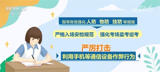 同時,會同公安部、工業和信息化部等部門聯合開展打擊作弊專項行動,將防范手機作弊作為重中之重,多措并舉、綜合施策,指導各地強化人防、物防、技防等措施,嚴格入場安檢規范,強化考場監考巡考,嚴厲打擊利用手機等通信設備作弊行為。對于在高考中存在作弊行為的考生和人員,將依法依規嚴肅處理,堅決維護高考的公平公正。