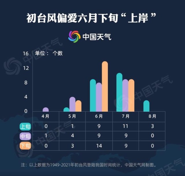 根據預報,這個熱帶系統或將于7月17日至18日左右在廣東到海南一帶沿海登陸。據中國天氣網大數據顯示,一般首個登陸我國的臺風多集中在每年的6月至7月,其中,6月下旬登陸的比例最高,7月上旬登陸比例位列第二。