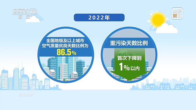不僅北京,十年來,全國重點城市PM2.5平均濃度下降57%。2022年,全國地級及以上城市空氣質(zhì)量優(yōu)良天數(shù)比例為86.5%,重污染天數(shù)比例首次下降到1%以內(nèi)。我國成為全球大氣質(zhì)量改善速度最快的國家,藍(lán)天保衛(wèi)戰(zhàn)正在給百姓帶來實實在在的幸福感。