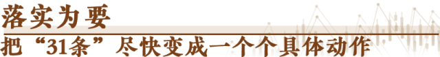 一分部署,九分落實。“31條”的最后三條,就是關于組織實施的要求。圍繞“31條”,“1+N”配套措施里的“N”,即將陸續公布,令人期待。