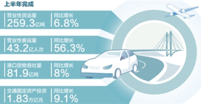 完成營業性貨運量259.3億噸,同比增長6.8%;完成交通固定資產投資1.83萬億元,繼續保持高位運行……7月31日,交通運輸部發布數據顯示,上半年,交通運輸經濟運行穩中向好,既有量的合理增長,也有質的有效提升。