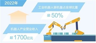 本報北京8月19日電 (記者王政、劉溫馨)記者日前從2023世界機器人大會上獲悉:2022年我國工業機器人裝機量占全球比重超50%,穩居全球第一大工業機器人市場,制造業機器人密度達到每萬名工人392臺。