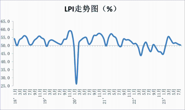 央視網消息:據中國物流與采購聯合會,2023年8月份中國物流業景氣指數為50.3%,較上月回落0.6個百分點;中國倉儲業指數為52%,較上月下降0.2個百分點。