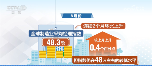8月份全球制造業采購經理指數為48.3%,較上月上升0.4個百分點,連續2個月環比上升,但指數仍在48%左右的較低水平,全球經濟呈弱勢修復態勢,總體趨緊的大環境沒有改變,需求收縮壓力仍然存在。