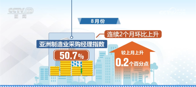 8月份,亞洲制造業采購經理指數為50.7%,較上月上升0.2個百分點,連續2個月環比上升,顯示亞洲制造業延續平穩增長趨勢。從主要國家看,中國制造業采購經理指數連續三個月上升,向好回升勢頭進一步鞏固,中國制造業呈現持續穩定恢復趨勢,為亞洲制造業的平穩增長提供重要支撐。