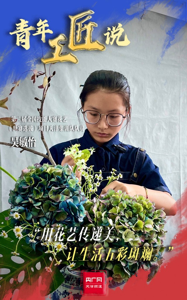 青春,是以工匠精神筑就美好生活的底色。走進位于天津農學院花藝(世賽選拔)項目的集訓現場,生機盎然、芬芳馥郁,天津集訓隊隊員吳敏怡正在挑選花材和花器,為每一件作品賦予一番獨特的意境。從2023年5月以來,吳敏怡每天要與花相伴12個小時,在審美及技術水平上的提高也讓她很有成就感。對于本次比賽,她也充滿期待:“我的目標是起碼能拿一個優勝獎,也是為了突破自己,讓自己的花藝技術更上一層樓?!彼f,她也將用花藝傳遞生活中的美,讓生活五彩斑斕。