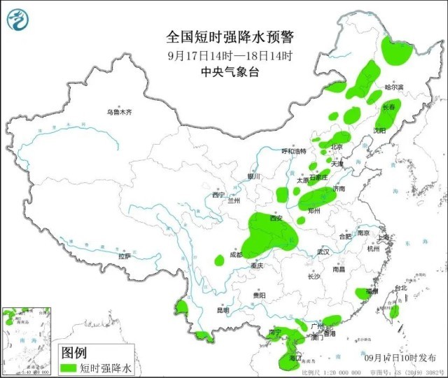 17日至19日,西北地區、華北、內蒙古、東北、黃淮、江漢、江淮有混合強對流天氣過程,風雹顯著,內蒙古東部、東北等局地可能出現龍卷風天氣。預計9月17日14時至18日14時,內蒙古中東部、陜西中部和北部、山西、河北北部和中部、北京北部、天津北部、河南北部等地的部分地區將有8至10級雷暴大風或冰雹天氣。