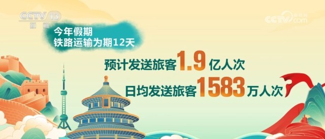 2023年假期,鐵路運輸自9月27日—10月8日,為期12天。根據鐵路部門之前的預測,12天期間全國鐵路預計發送旅客1.9億人次,日均發送旅客1583萬人次。