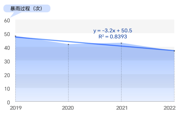 數據統計顯示,2012年至2022年,我國暴雨發生次數走勢振蕩,并沒有較為明顯的增加趨勢。并且自2019年以來,我國暴雨發生次數還有緩慢減少的趨勢。