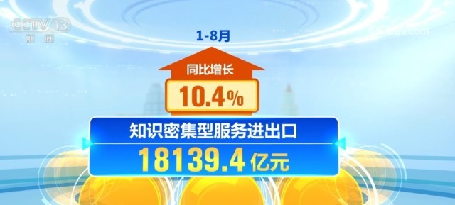 知識密集型服務貿易占比提升。1—8月,知識密集型服務進出口18139.4億元,同比增長10.4%,占服務進出口總額的比重達42.6%,較上年同期提升0.9個百分點。知識密集型服務出口10513.6億元,增長13.1%,知識密集型服務進口7625.8億元,增長6.9%。