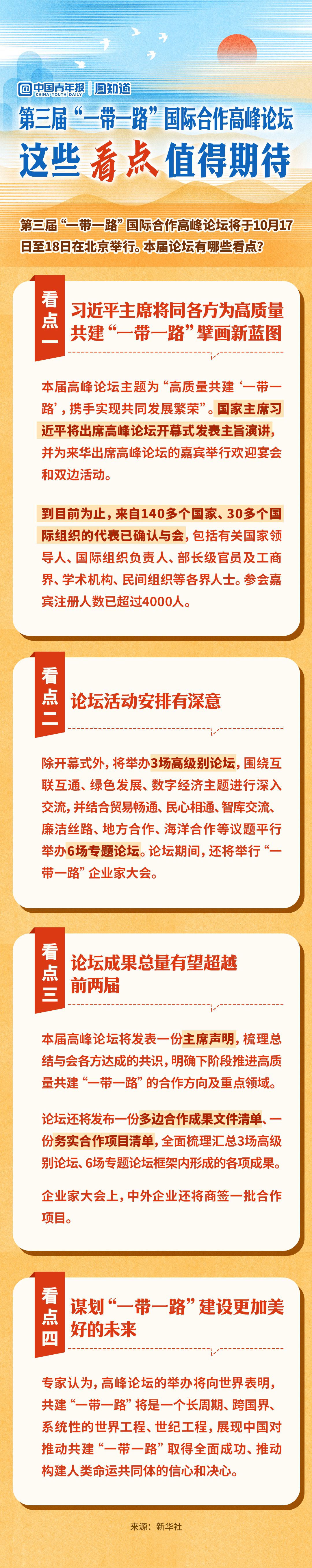 第三屆“一帶一路”國際合作高峰論壇將于10月17日至18日在北京舉行。本屆論壇有哪些看點?一圖查看,共同期待論壇的豐厚成果!