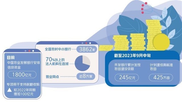 “下一步,開發銀行將持續發揮開發性金融功能作用,聚焦農業基礎設施精準補短板、強弱項,用好農田建設專項貸款,優化信貸資源配置,堅持讓利于農,為高標準農田建設提供更有力的金融支持。”該負責人表示,截至2023年9月中旬,開發銀行累計發放農田建設貸款245億元,計劃建成高標準農田425萬畝,其中2023年發放53億元,重點支持了吉林、江蘇、四川、廣西、寧夏等省市的高標準農田建設和農田基礎設施改造提升工程。