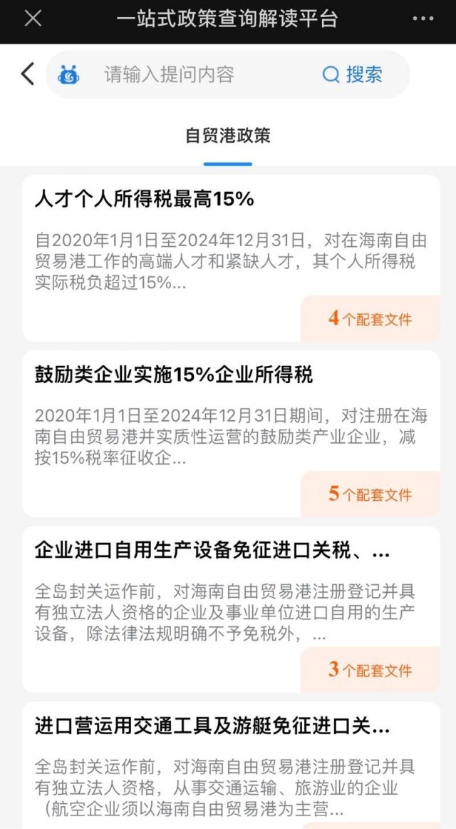 海南自由貿易港一站式政策查詢解讀平臺截圖。