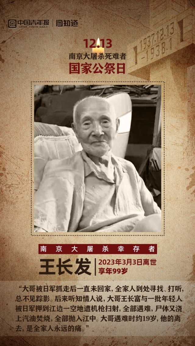 在侵華日軍南京大屠殺遇難同胞紀念館,有一面南京大屠殺幸存者照片墻。每有一位登記在冊的幸存者離世,就會熄滅一盞燈。但是,他們在生前通過口述等方式將歷史記憶留給了我們。一個個體的生命可能有盡頭,但一個國家、一個民族的記憶將代代相傳。今天是南京大屠殺死難者國家公祭日,共同走近這些老人,他們離去了,但我們可以點亮一盞名為記憶的燈。
