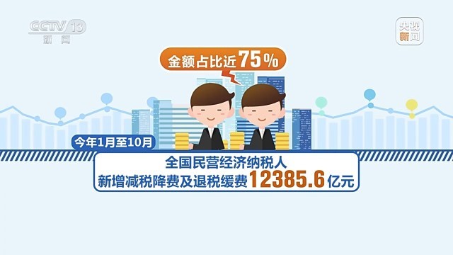 我國延續、優化的這批階段性稅費優惠政策中,民營經濟納稅人是主要受益對象。國家稅務總局數據顯示,今年1月至10月,全國民營經濟納稅人新增減稅降費及退稅緩費12385.6億元,金額占比近75%。