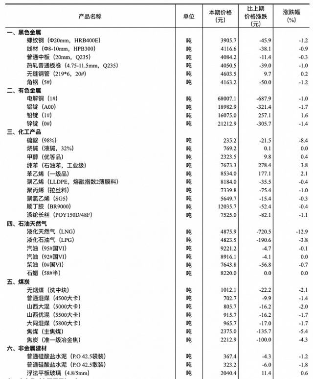 央視網消息:國家統計局發布2024年1月中旬流通領域重要生產資料市場價格變動情況,詳情如下: