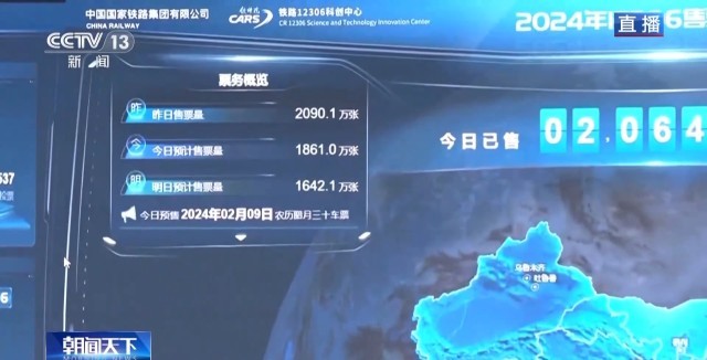 總臺央視記者 鄭連凱:從今天凌晨到目前為止,八個多小時售出的火車票有200多萬張,應該說節前的售票高峰已經到來。