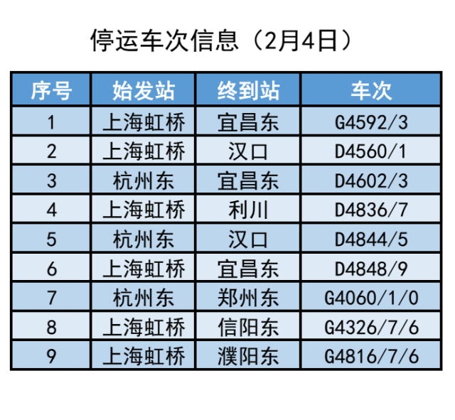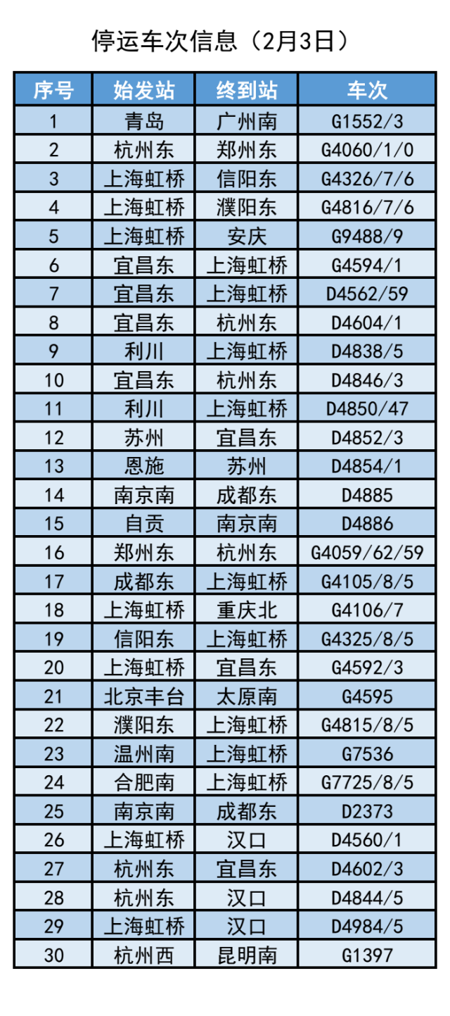 截至2月3日7時30分,計劃停運2月3日至2月4日間39趟旅客列車