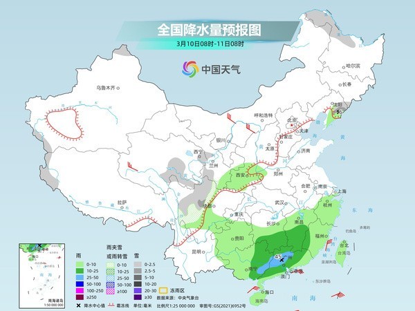 昨天,南方降雨范圍增大、強度增強,華南部分地區(qū)出現(xiàn)較強降雨,北方大部晴朗干燥,西北地區(qū)局地出現(xiàn)較強降雪。監(jiān)測顯示,廣西南部、廣東中北部、江西南部等地出現(xiàn)中到大雨;青海東部、甘肅南部出現(xiàn)小到中雪或雨夾雪,局地大雪。