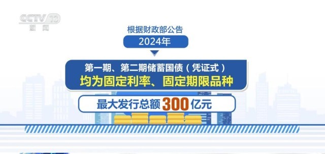 根據財政部公告,2024年第一期、第二期儲蓄國債(憑證式)均為固定利率、固定期限品種,最大發行總額300億元。其中,第一期期限為3年,最大發行額150億元,票面年利率2.38%;第二期期限為5年,最大發行額150億元,票面年利率2.5%。