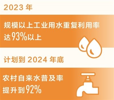 推進農村供水高質量發展。農村自來水普及率達到90%。計劃到今年底,農村自來水普及率提升到92%,規模化供水工程覆蓋農村人口比例提高到63%。