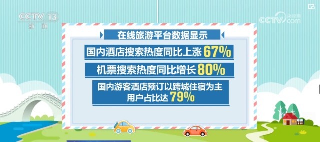 在線旅游平臺數(shù)據(jù)顯示,對清明節(jié)期間的國內(nèi)酒店搜索熱度同比上漲67%,機(jī)票搜索熱度同比增長80%,國內(nèi)游客酒店預(yù)訂以跨城住宿為主,用戶占比達(dá)79%。國內(nèi)旅游預(yù)訂較熱門的目的地有上海、北京、杭州等。