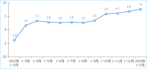 互聯網業務收入穩步提升。1—2月份,我國規模以上互聯網和相關服務企業(以下簡稱互聯網企業)完成互聯網業務收入2463億元,同比增長7.6%,增速較2023年全年提升0.8個百分點。