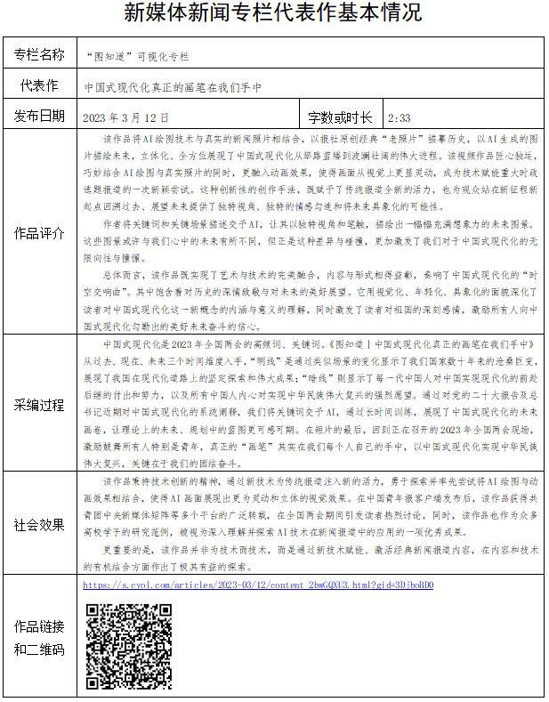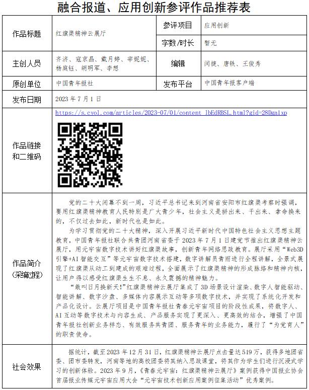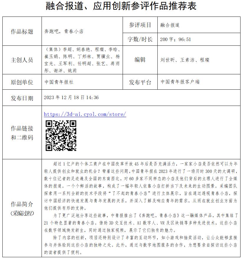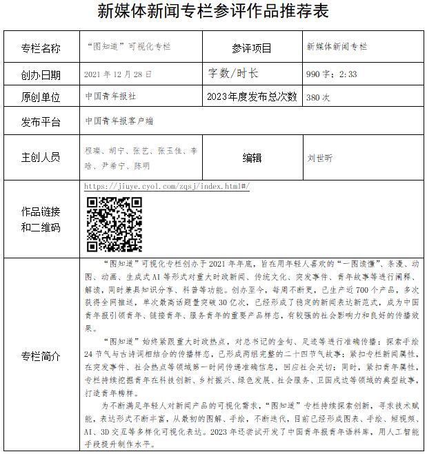 中國青年報社推薦參評第34屆中國新聞獎融合報道、應用創(chuàng)新和新媒體新聞專欄作品專項初評公示