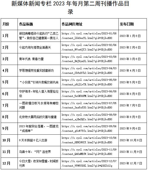 根據(jù)第34屆中國新聞獎融合報道、應用創(chuàng)新和新媒體新聞專欄作品專項初評工作通知的有關(guān)要求,經(jīng)向報社各部門單位征集、報社評委會研究推薦,報社領(lǐng)導同意,擬推薦以下作品參加專項初評。